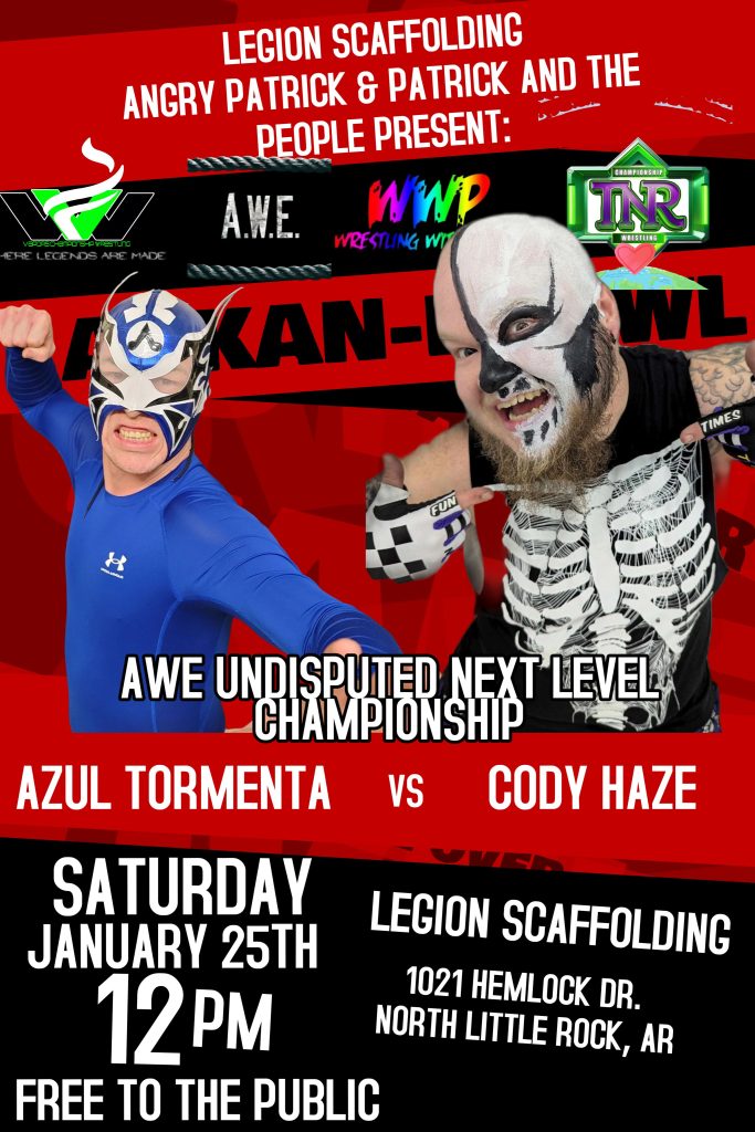 Be sure to mark your calendar for January 25th, 2025 when AWE, TNR, WWP and VCW present the 1st ever Arkan-Brawl. This is a 100% family friendly FREE event so be sure to bring everyone! Come see the action!