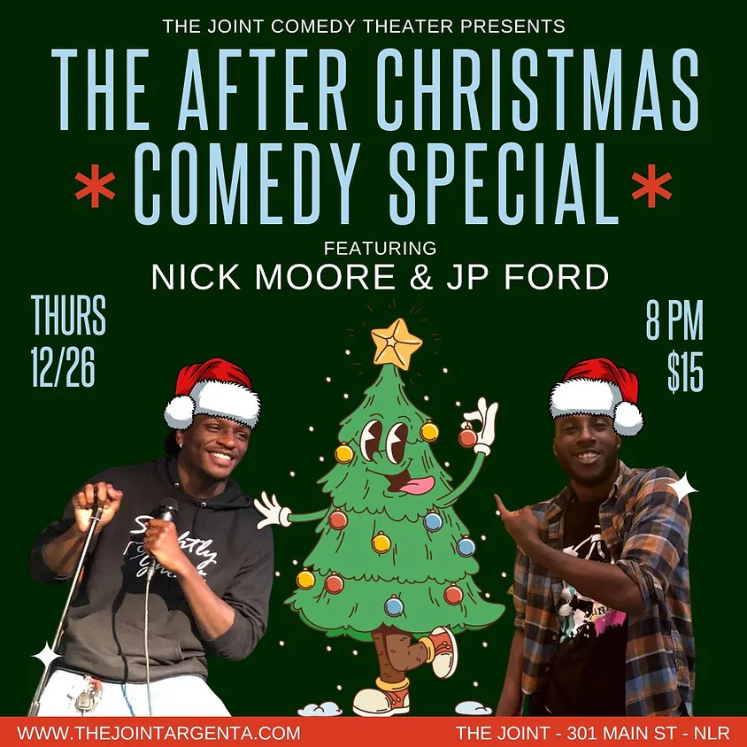 Tune in this Friday to see JP Ford and Nick Moore on Patrick and the People. They’ll be promoting their upcoming “After Christmas Special” at the Joint in Argenta on December 26th! Tune in for an entertaining episode and be sure to check out their special!