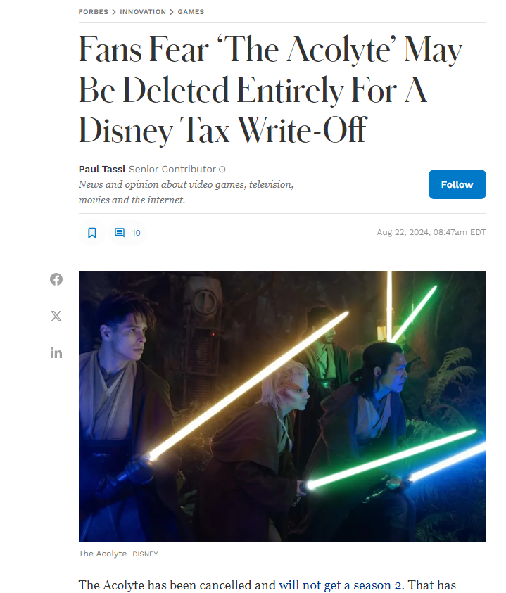 They worry The Acolyte will be deleted from the internet and I worry that we can never get back the energy used that could have kept sick babies alive. Which do you care about? A show that’s the cinematic equivalent of watching a turd in a microwave or saving sick babies?